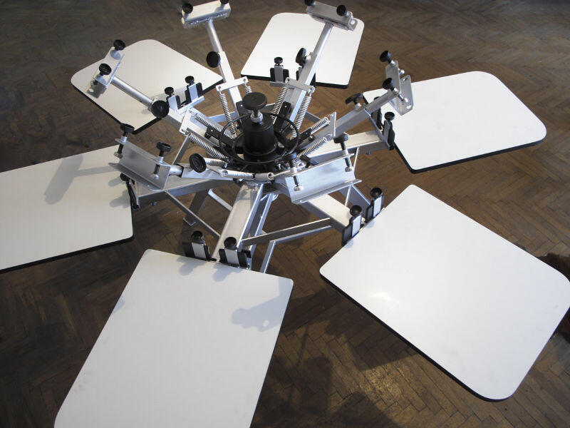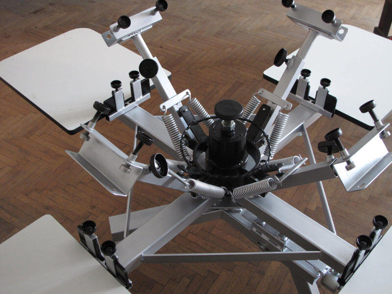 Realizăm carusele în mai multe configurații constructive, destinate în primul rând imprimărilor pe materiale textile la mai multe culori, dar care pot fi folosite foarte bine pe post de mese de precizie, atunci când e necesar. Variantele constructive sunt: 4+1; 4+2; 4+4; 6+1; 6+2; 6+6, adică 4 culori + 1 blat de lucru... până la 6 culori + 6 blaturi de lucru.