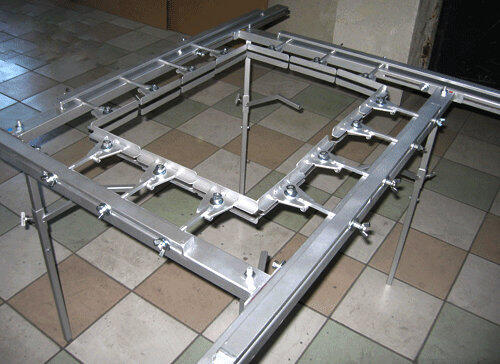 - sunt prevăzute cu suporți mobili ptr. fixarea și poziționarea ramei în timpul aplicării adezivului.